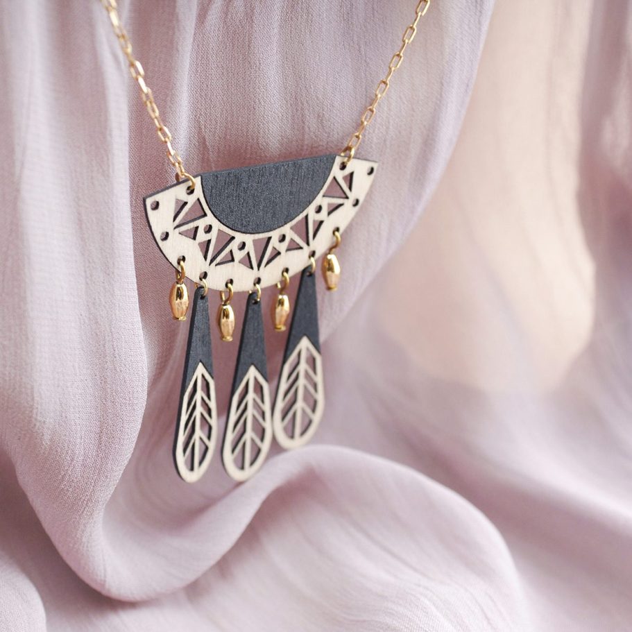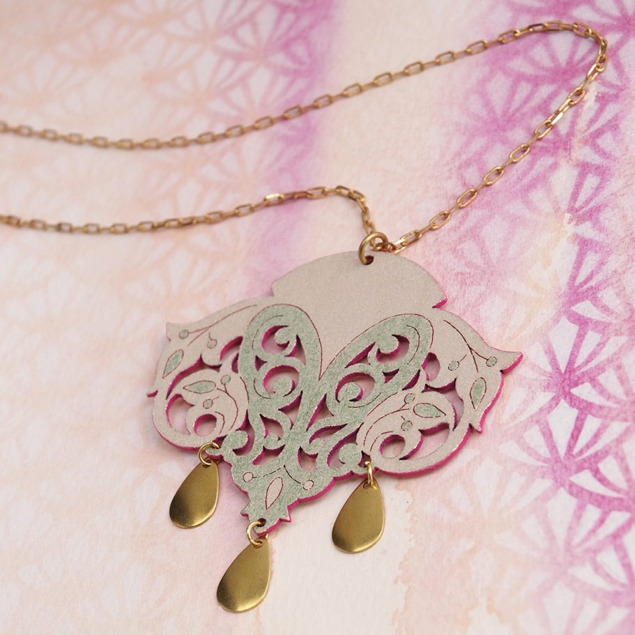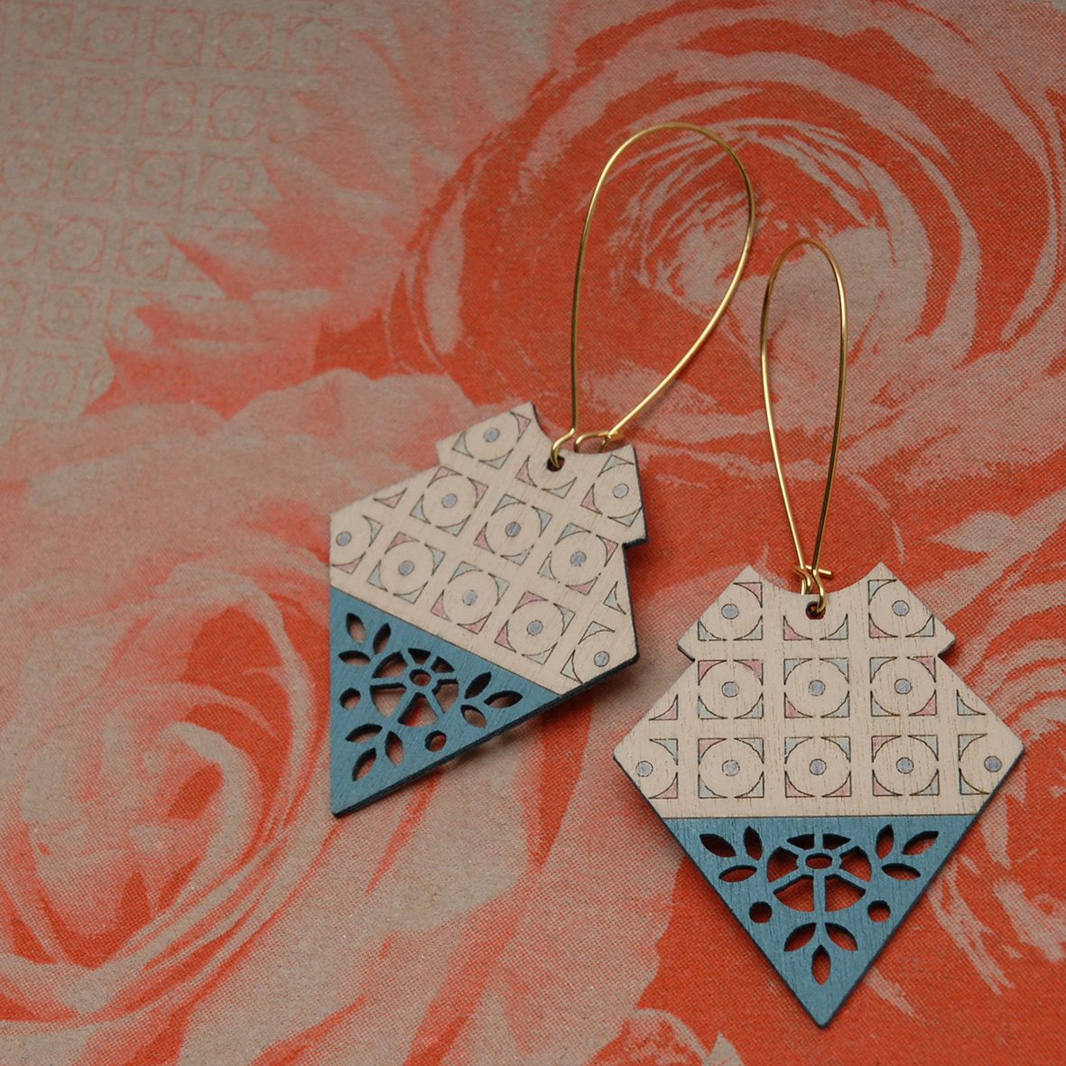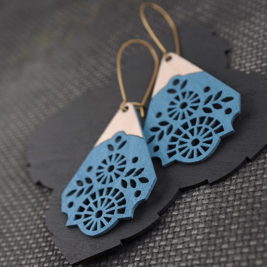 This laser-cut jewellery collection continued my exploration of designed components, while shifting toward a more labour-intensive, hand-crafted finish. Each piece was hand painted with intricate patterns rather than spray painted, drawing inspiration from two of my favourite artists: Charles Rennie Mackintosh and Frida Kahlo. The designs pay homage to Kahlo’s iconic style of dress and use of pattern, alongside Mackintosh’s elegant, architectural forms. Each range comprised six designs and was produced in a shorter run due to the complexity and time-intensive nature of the process.