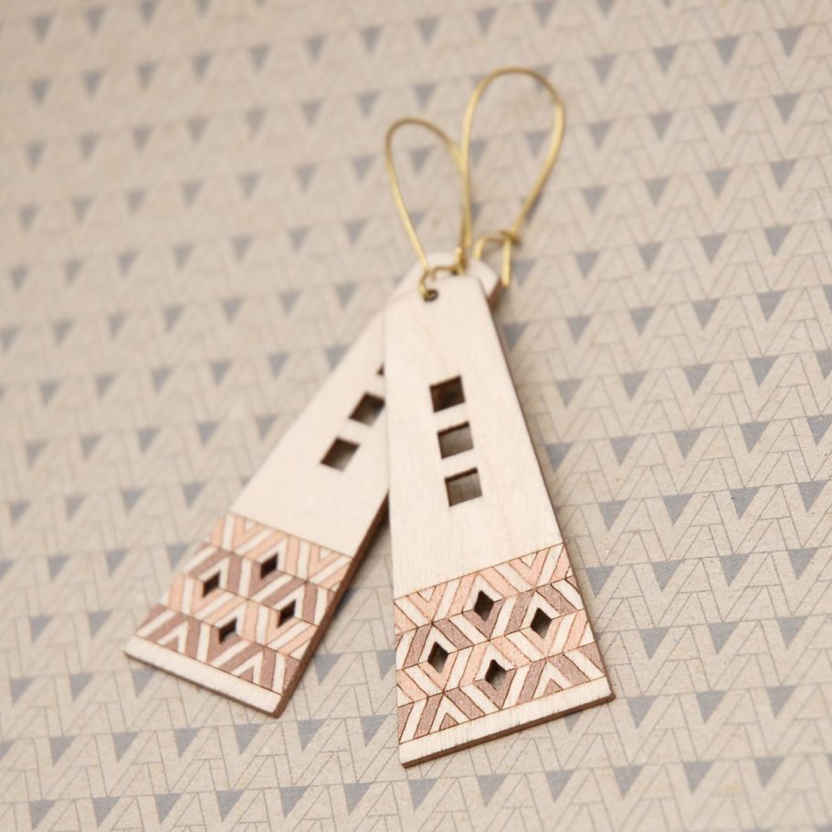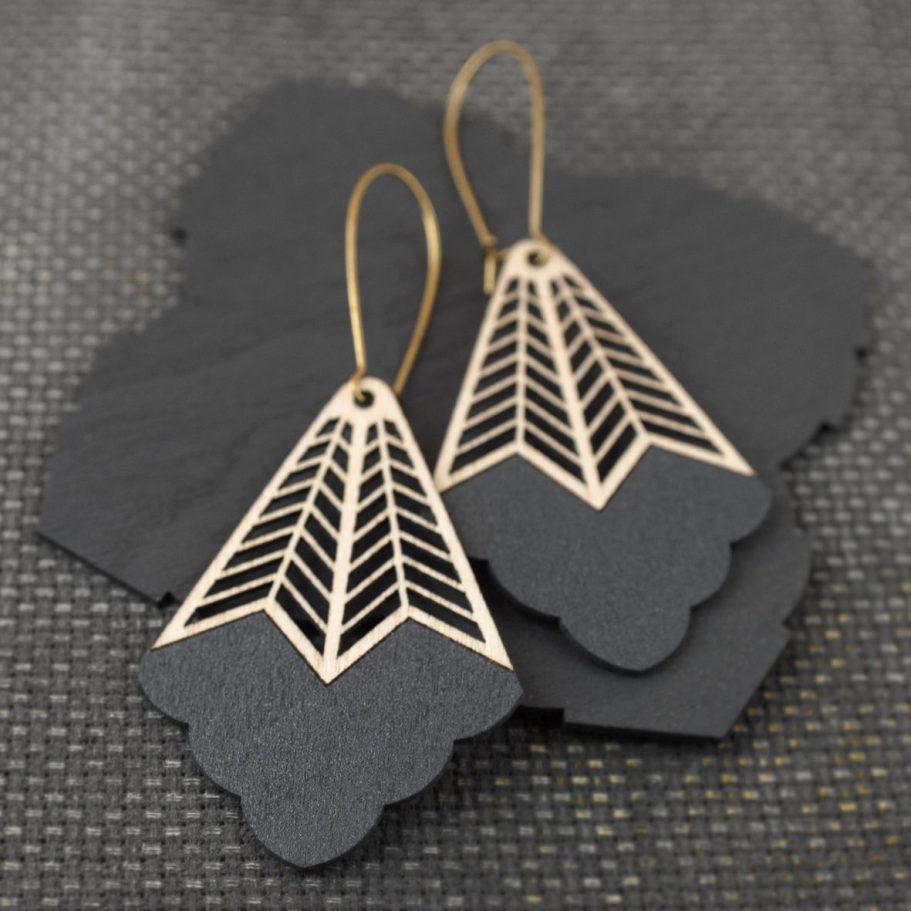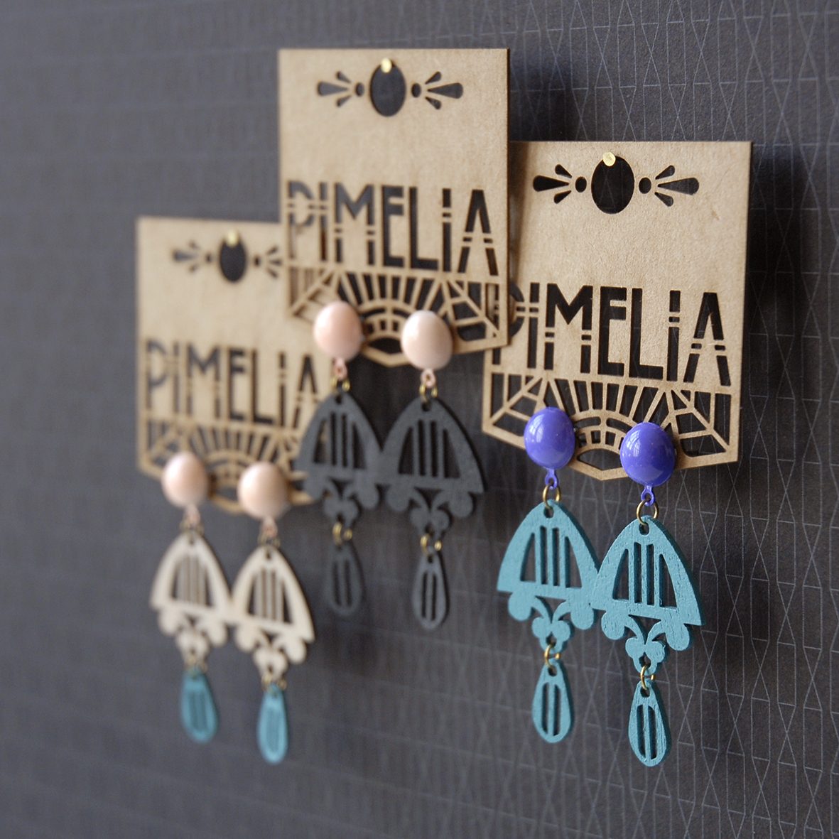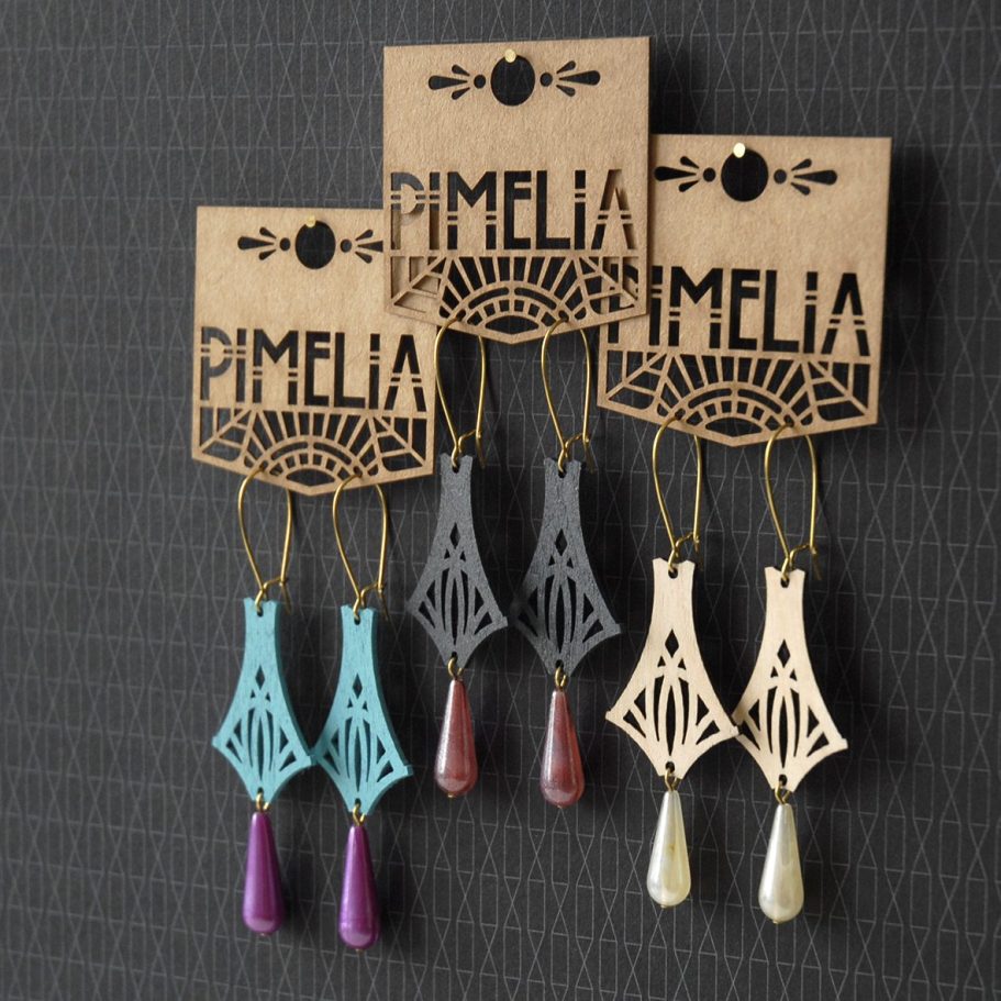 The Birch range of eco-jewellery marked a shift in my practice, as it was the first Pimelia collection built from originally designed components rather than reclaimed materials. I set out to create a product that could be produced in small, repeatable runs while remaining as environmentally responsible as possible. Using sustainably harvested birch plywood laser cut with 100% green power, low-impact sugarcane-based paints, recycled brass findings and considered packaging, the range balanced scalability with sustainability. This change in approach allowed the work to grow beyond one-off pieces, expanding stockists across Australia and overseas and supporting a successful online store. There were 21 designs in the range.